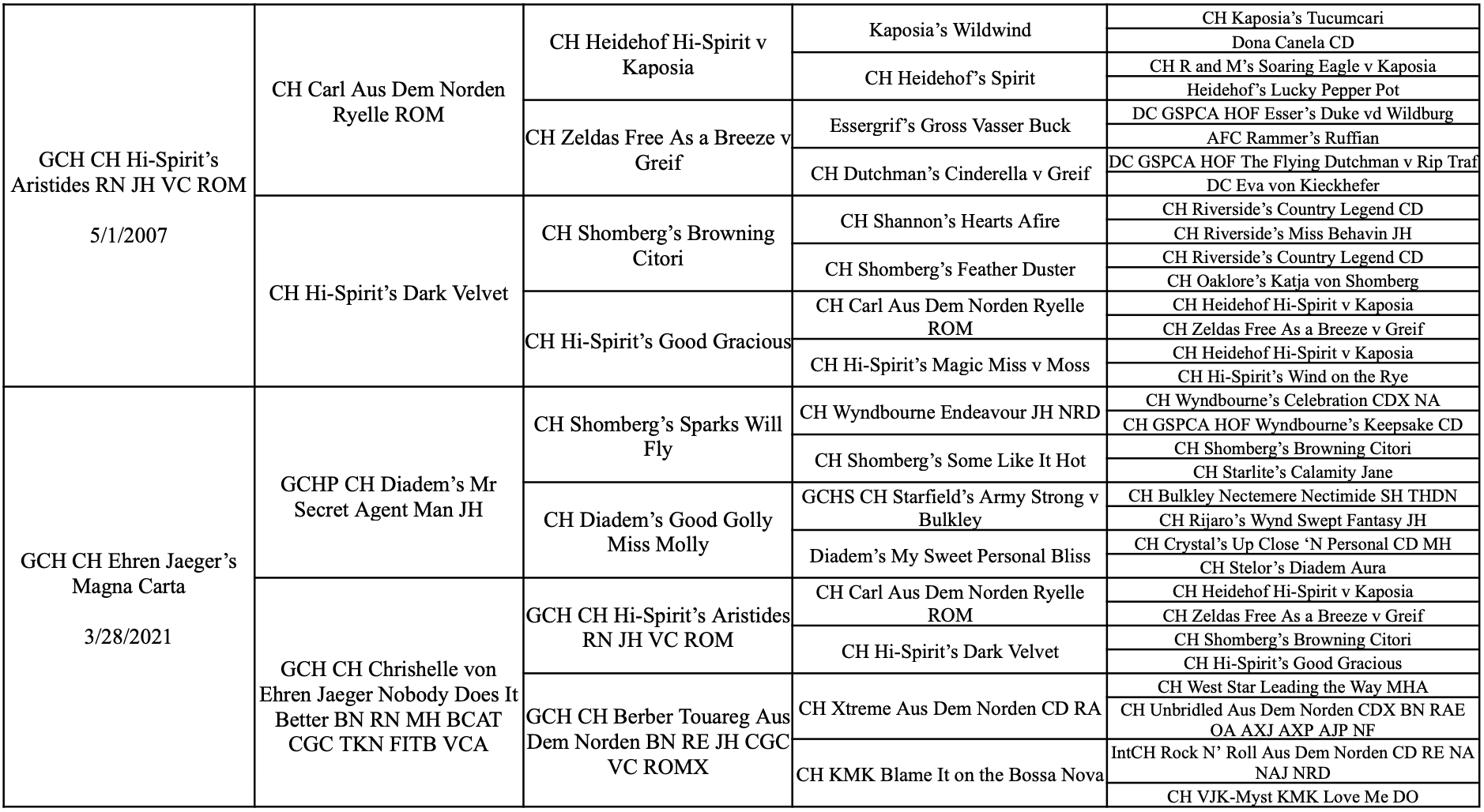 GCH CH Ehren Jaeger’s Magna Carta